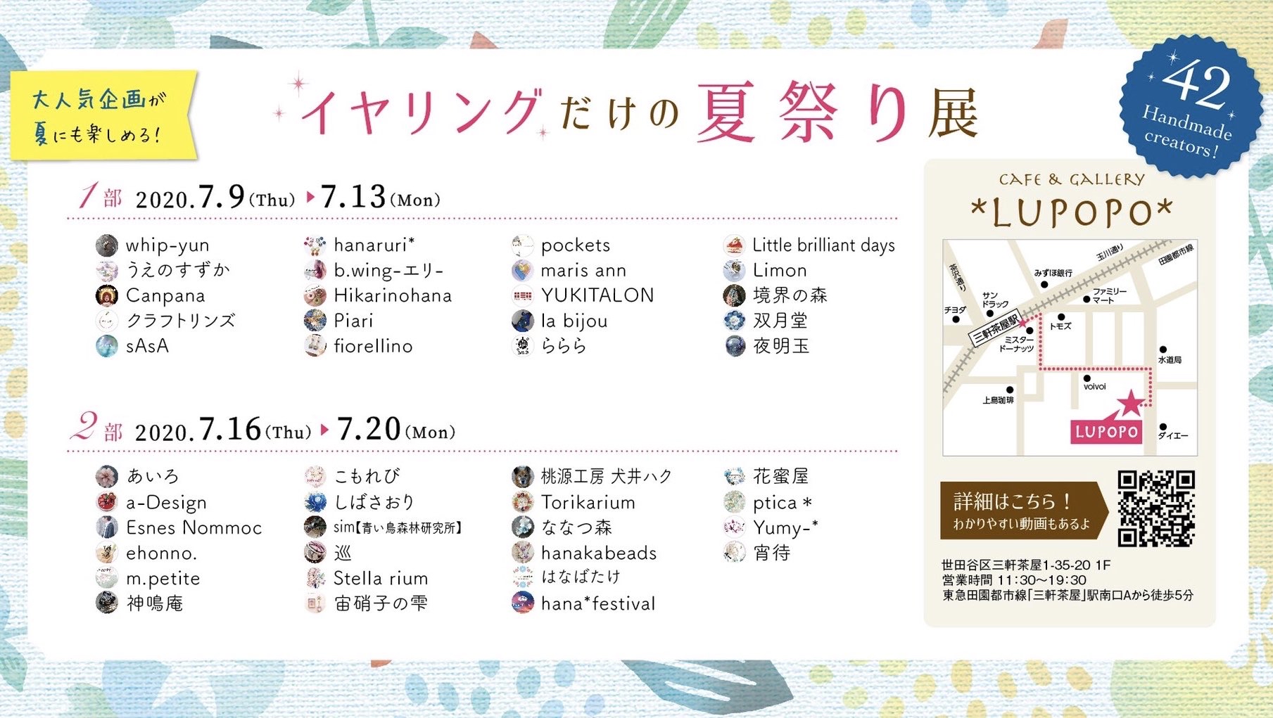 「イヤリングだけの夏祭り展」が2部制で開催されます。